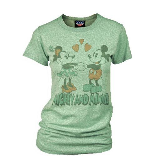 Junk Food Mickey and Minnie Mouse Hearts Sage Green Tri-blend Juniors/Ladies T-shirt Tee Review