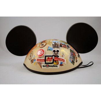 These adult size Mickey Ears feature posters and images from the last 40 years of Walt Disney World and include a Disney World 40th logo button on the front and retro Epcot logo on the back.