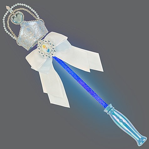 Crown off her royal costume with our Light-Up Cinderella Wand. A bejewelled and glittering crown sits atop this wondrous wand that lights up and flashes so your Disney Princess can create her very own Bibbidi-Bobbidi-Boo moment. Product Details * Satin crown with glitter pumpkin coach design and topped with jewelled accents * Cinderellla cameo with organza bows * 2 light settings: constant or flashing * Plastic/polyester * 16'' H * Requires 3 x 1.5V AC13 LR44 button cell batteries, included * Imported * A royal match with our Glitter Cinderella Costume for Girls, crown and shoes, each sold separately