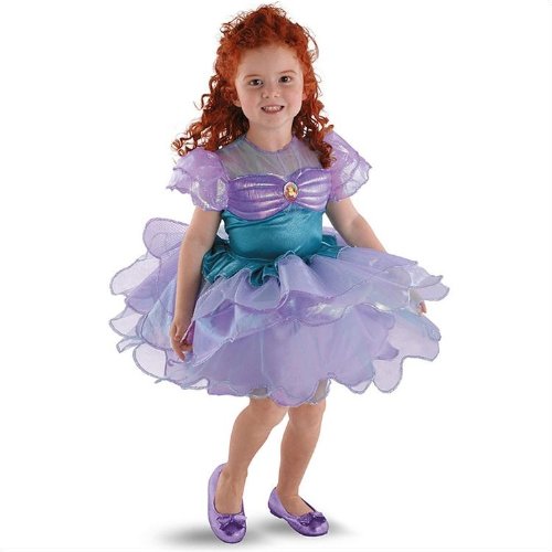 Your child will be beautiful as a Disney Princess and swift as a ballerina in this classic Disney Ariel Ballerina Kids Costume. The Disney Princess Ariel costume includes a purple and teal dress with a tutu-style iridescent layered skirt and an Ariel character cameo between seashells on the top. Your little girl can look just like her favorite Disney Princes, Ariel the Little Mermaid. This is an officially licensed Disney Princess ArielTM product by ©Disney. Ballet slippers are not included.