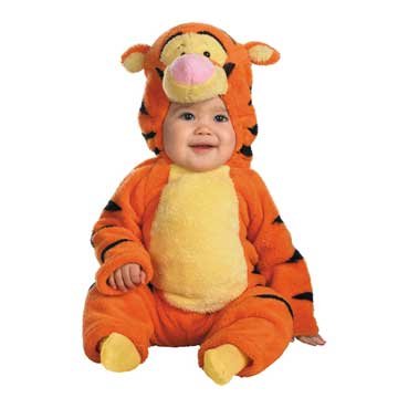Disguise Tigger Deluxe Two Sided Plush Jumpsuit NON-RETURNABLEHang out with Christopher Robbins, Piglet, Pooh and Eeyore this Halloween! The Tigger costume is perfect for any little boy or girl. The toddler Halloween costume features an ultra soft plush inside and ultra soft plush outside. The toddler costume also boasts a Tigger character hood. The Tigger costume comes in three different sizes and is perfect for any child from 12 months to about 4 years. The Tigger costume does not include any mittens or booties for the child.